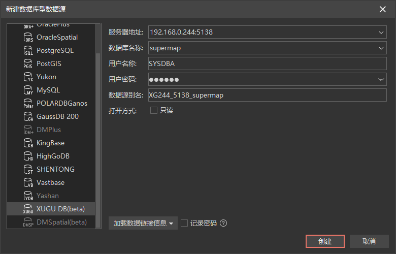 超图与虚谷双方合作,联合开发,支持使用Xugu引擎连接虚谷空间库,主要功能包括:
