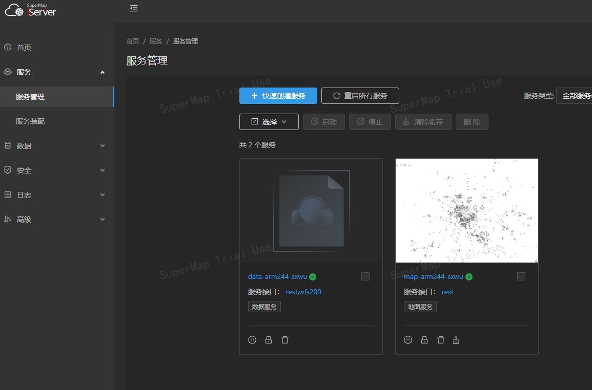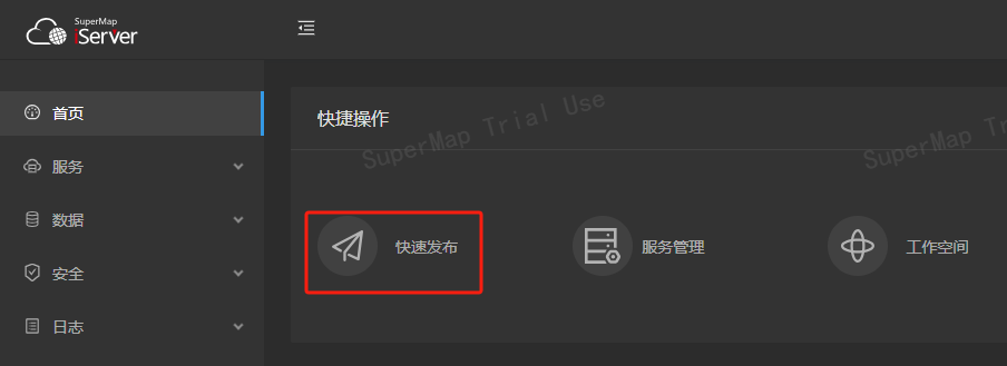 登录iServer管理界面,导航至“服务管理”页面,点击“快速发布”按钮开始发布新的服务。