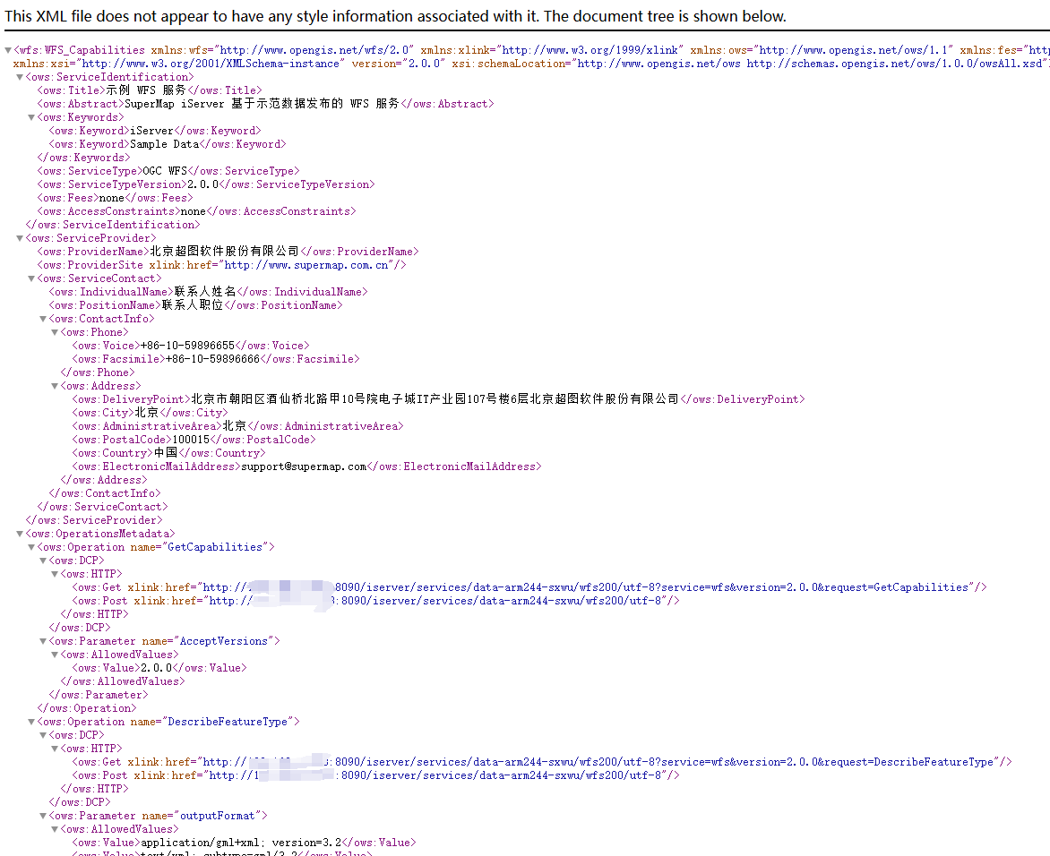图 3.8 查看已发布服务查看 WFS2.0 服务: