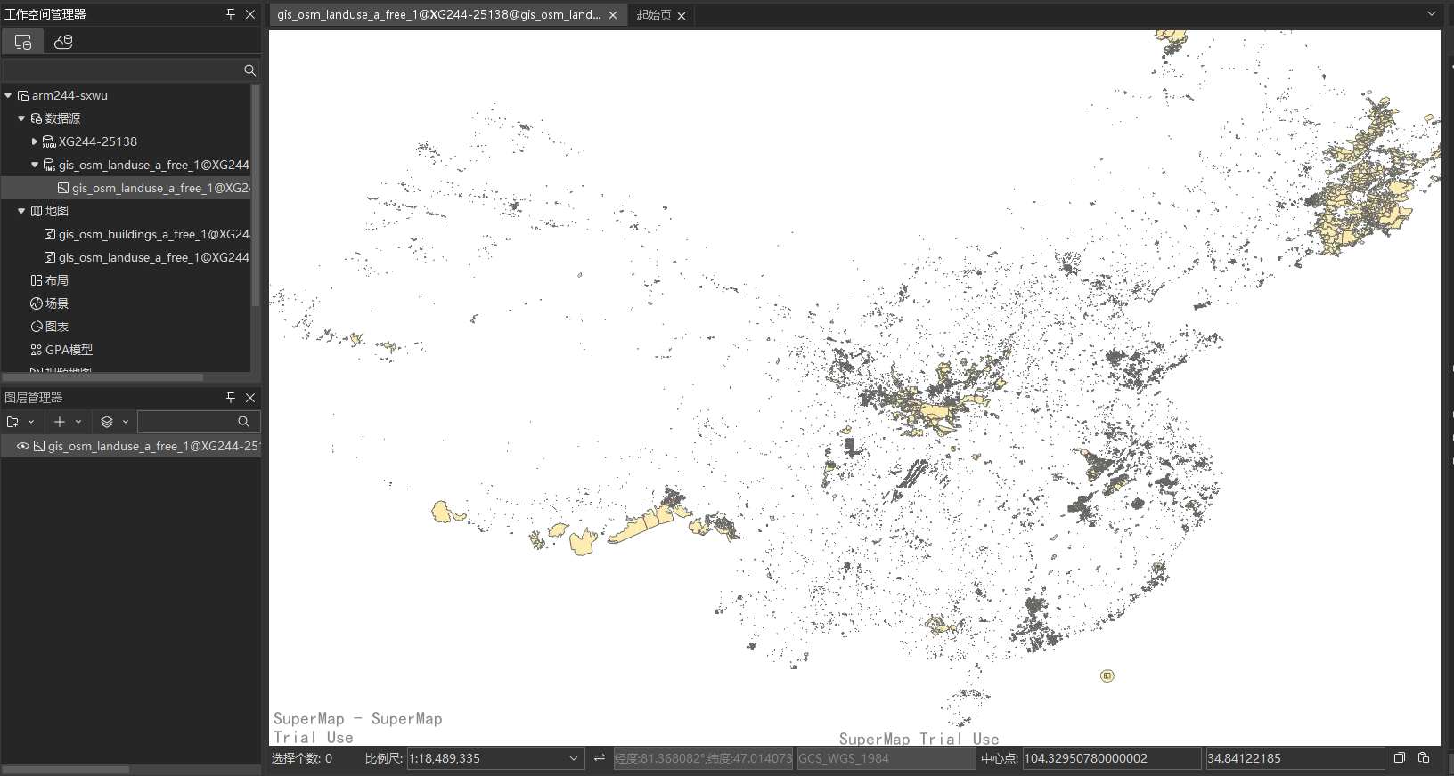 本章节以开源数据 OSM 的土地利用 gis_osm_landuse_a_free 数据集为例,介绍 iServer 发布服务的基本方法。