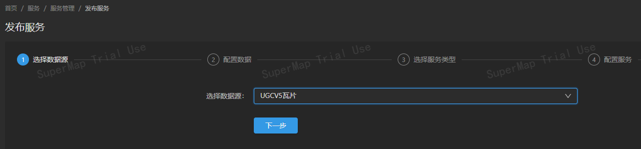在发布服务页面,选择“UGCV5瓦片”作为数据源类型。