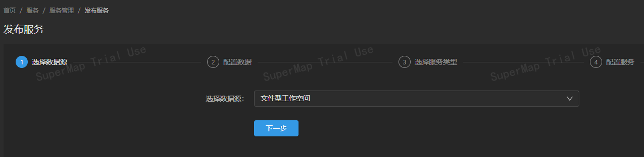 在发布服务页面,选择“文件型工作空间”作为数据源类型。